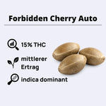Auto Forbidden Cherry ist eine robuste, anfängerfreundliche Autoflower mit kompaktem Wuchsform (typisch 50-75 cm). Die Pflanze zeigt buschige, stabile Struktur mit großer zentraler Hauptblüte und mehreren soliden Seitenblüten. Der Schwierigkeitsgrad ist niedrig—eine leichte, stabilen Autoflower auch unter Herausforderungen. Blütezeit beträgt 9-10 Wochen indoor (63-70 Tage), outdoor 11-12 Wochen. Auto Forbidden Cherry ist außergewöhnlich robust und widerstandsfähig, gedeiht in vielen Bedingungen (Outdoor, Gewächshäuser, Indoor). Works in allen Systemen. Yield: 400-450 g/m² indoor, Outdoor variabel (50-150g+). Einfache Kultur—selektiv gezüchtet für Anfänger. Schnelle, garantierte Ernte. Perfekt für violette, schöne Blüten.